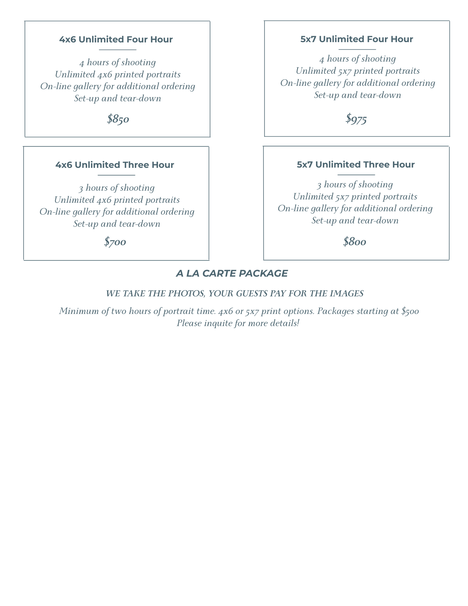 With our onsite printing, your event’s visual impact is guaranteed to last. Every image from your event will also be uploaded to our secure online gallery within 3-5 business days, offering convenient digital downloads, options for larger prints, and even custom photo merchandise. You can select from a range of traditional backgrounds, including black, white and green screen. Ask about adding your logo to each image or adding a custom background or frame to your images. Need more time? Extra hour of photography are available for $135 each.